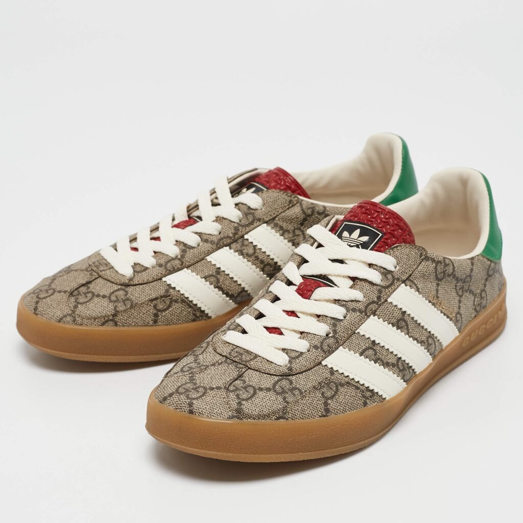 Gucci x Adidas Beige GG Supreme Canvas Gazelle Sneakers