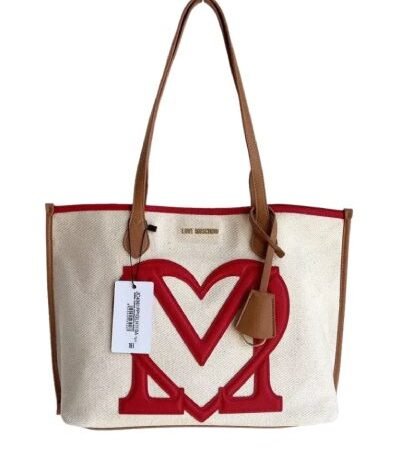 Love Moschino Summer Canvas Tote – Ivory/Fuchsia