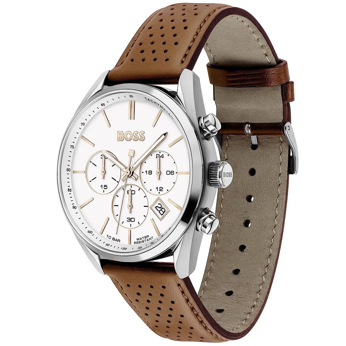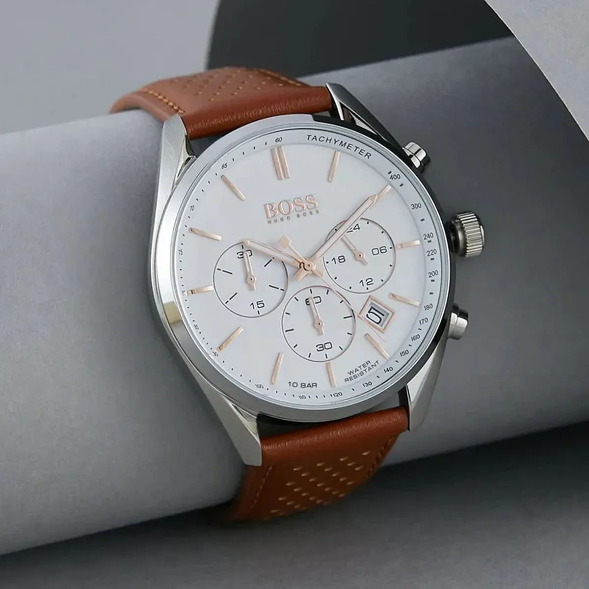 Boss Lucent features a clean silver dial with a matching stainless steel bracelet, offering a refined and timeless design. Ideal for both business and casual settings, with reliable quartz movement and water resistance.