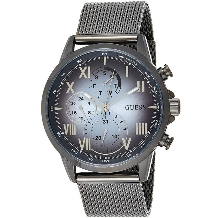Guess Vector stands out with its rich blue chronograph dial and rose gold stainless steel case, delivering a bold and stylish look. Perfect for evening wear or standout everyday use, featuring quartz movement and water resistance.