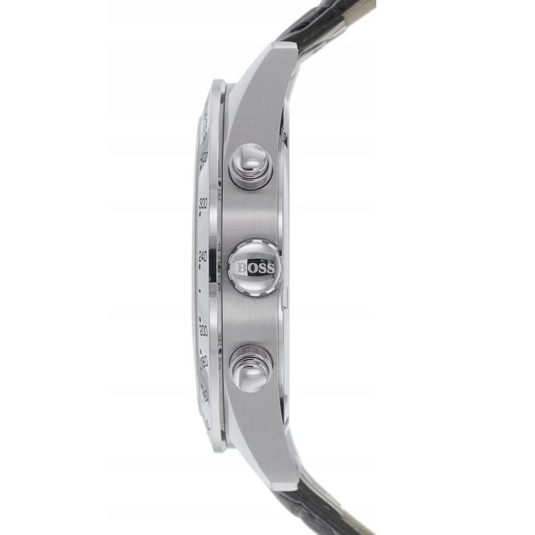 The Hugo Boss 1513579 is a men’s analog chronograph watch with a 42mm silver-tone stainless steel case and a black dial. It includes silver-tone hands and index hour markers, with a date display between the 4 and 5 o’clock positions. The watch features three sub-dials displaying 60 seconds, 30 minutes, and 24 hours. Powered by a quartz movement, it is water-resistant up to 50 meters. The black genuine leather strap adds a sophisticated touch to its design.