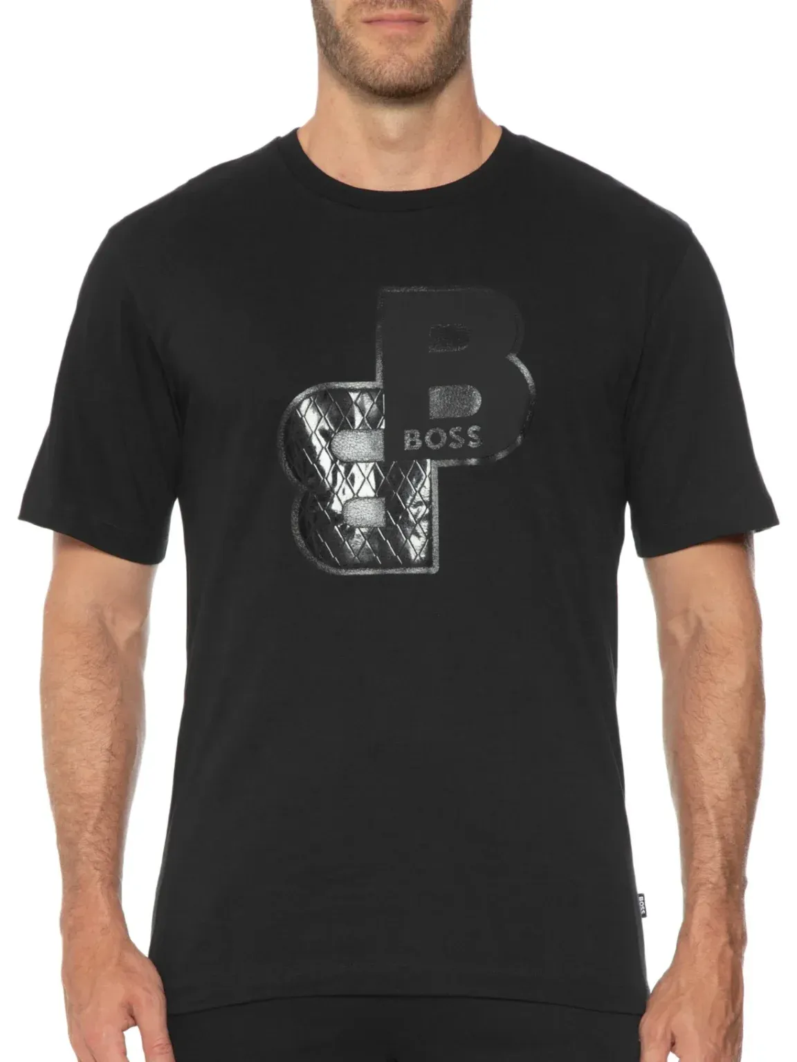 Original BOSS Tessin black T-shirt crafted in soft cotton jersey, featuring a rubberized logo on the chest and relaxed, everyday comfort.