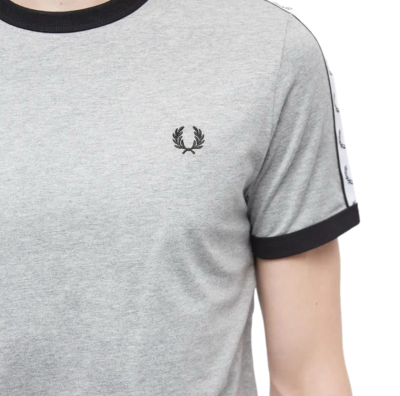 Fred Perry crew neck T-shirt with geometric jacquard knit and a refined deep trim neckline for a smart, sporty edge.