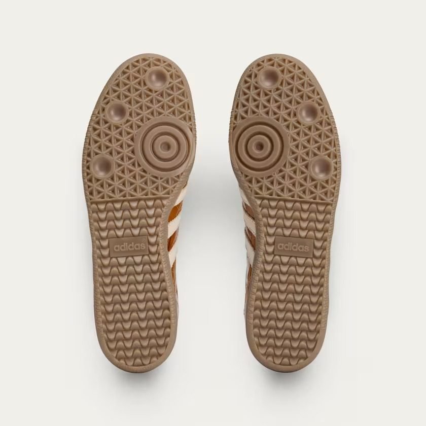 The deep Night Brown hue exudes warmth and elegance, contrasted by subtle tonal stitching and signature Wales Bonner touches, including extended tongue design, co-branded detailing, and fine craftsmanship throughout. A gum rubber outsole grounds the design, maintaining the Samba’s authentic vintage appeal while delivering everyday comfort and durability.