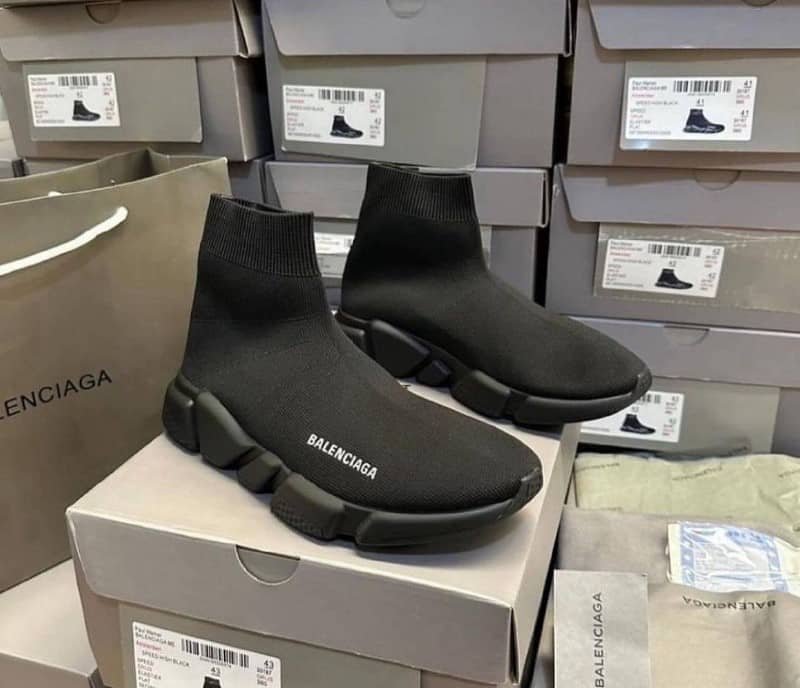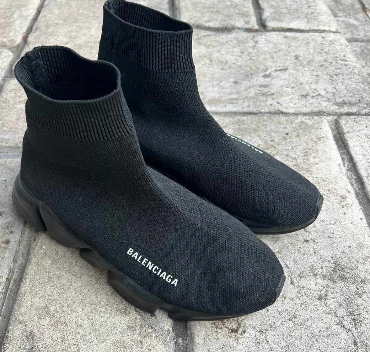 The Balenciaga Speed Trainer in black knit fabric is a minimalist, sock-like sneaker that delivers cutting-edge comfort and high-end fashion appeal. Lightweight, sleek, and instantly recognizable.