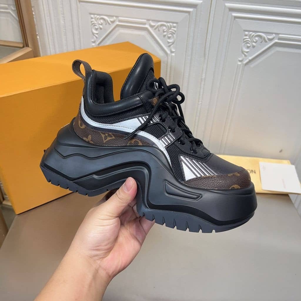 A bold reinterpretation of a cult favorite, the LV Archlight 2.0 Platform Sneaker blends futuristic design with elevated street style. With its exaggerated curves and luxurious construction, it’s a true fashion statement.