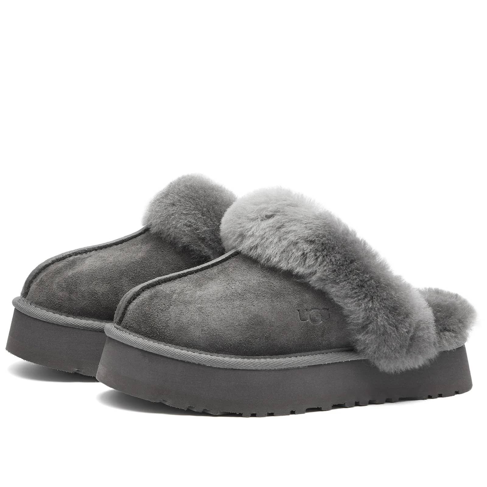 The UGG Disquette Slipper in Charcoal blends iconic UGG coziness with a platform sole and retro-inspired flair. A statement piece that offers both indoor comfort and outdoor versatility.