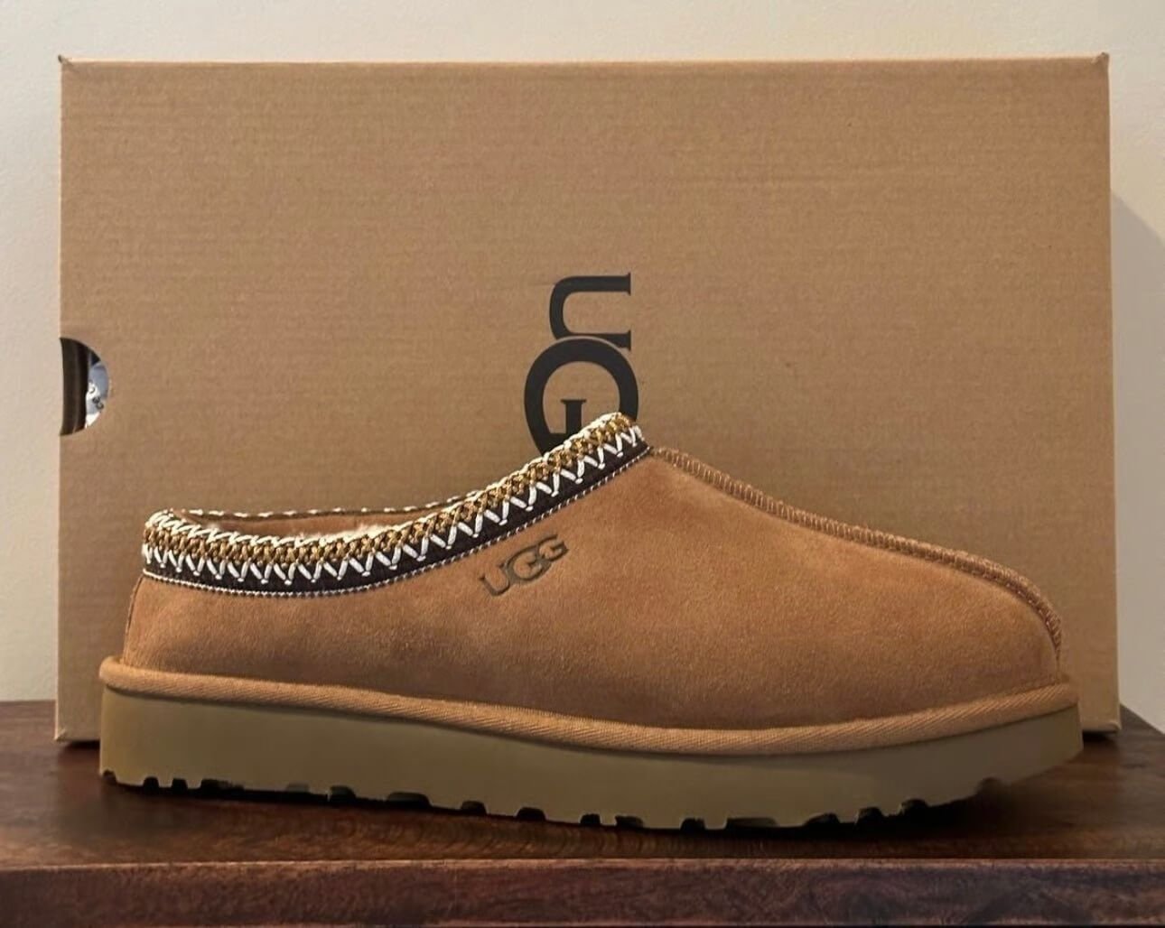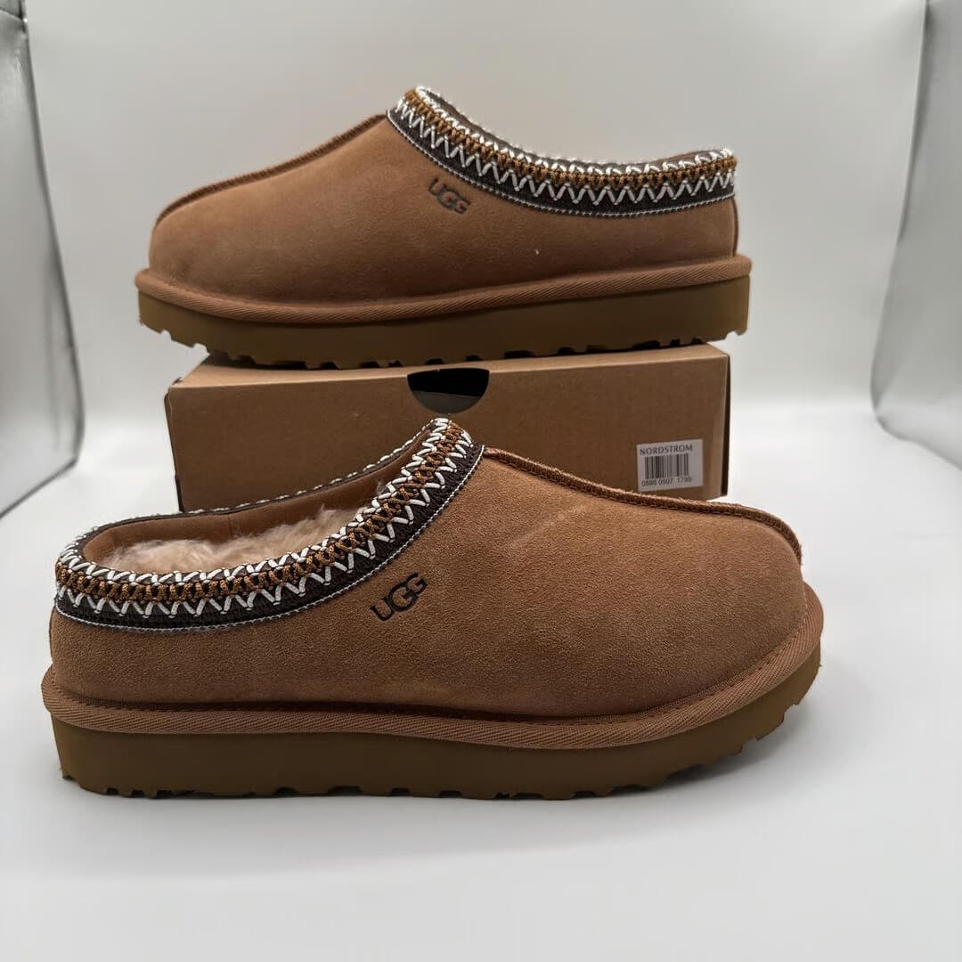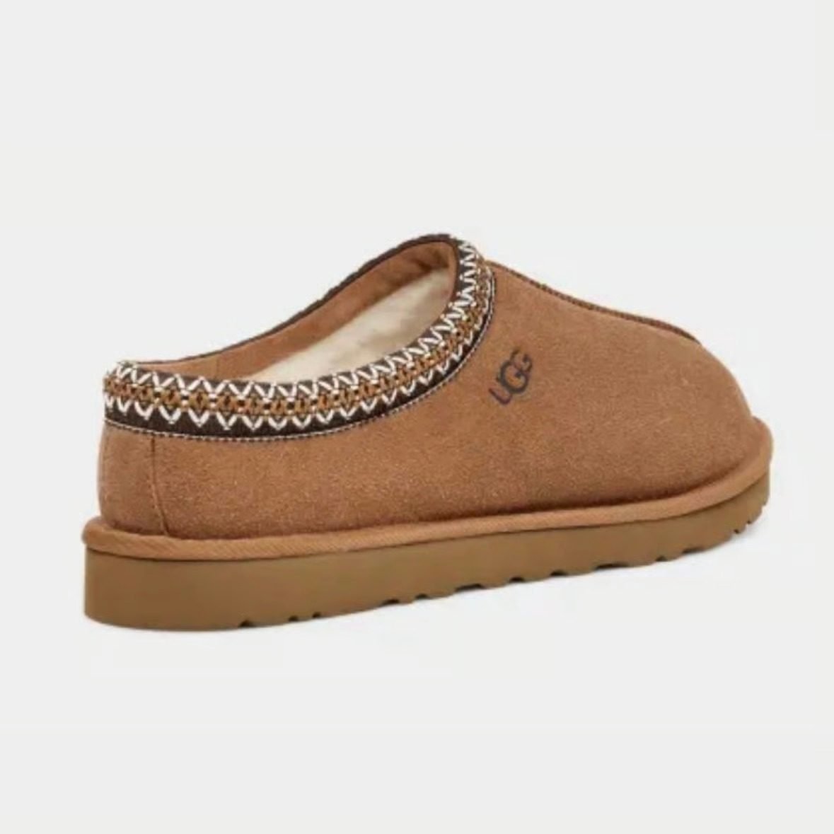 The UGG Tasman Slipper in Chestnut blends classic craftsmanship with modern comfort, offering an effortlessly versatile design perfect for both indoor relaxation and outdoor strolls.
