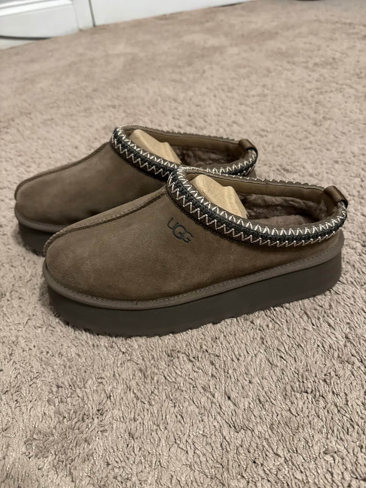 The UGG Tazz Slipper in Hickory redefines cozy luxury with its elevated platform design, plush lining, and signature UGG craftsmanship — perfect for both indoor relaxation and outdoor style.