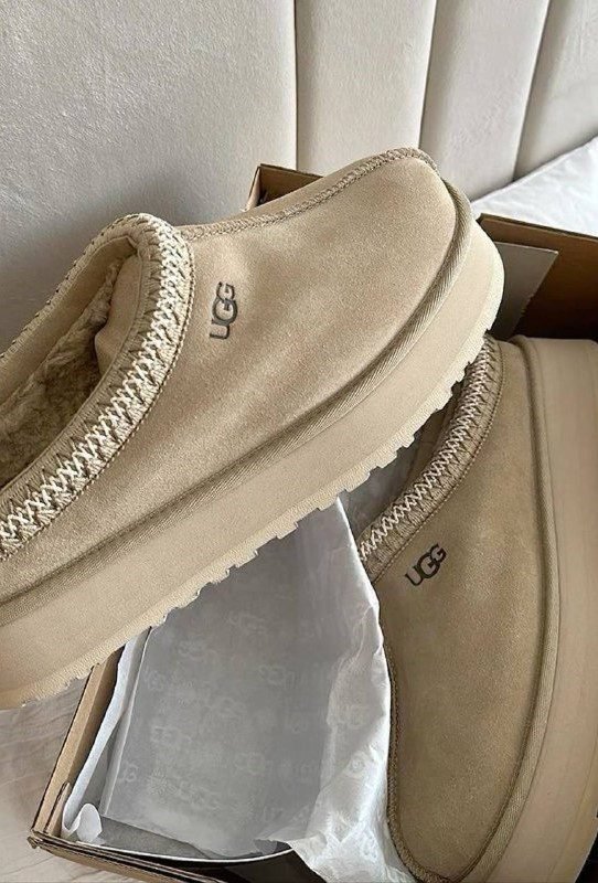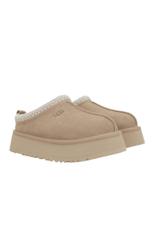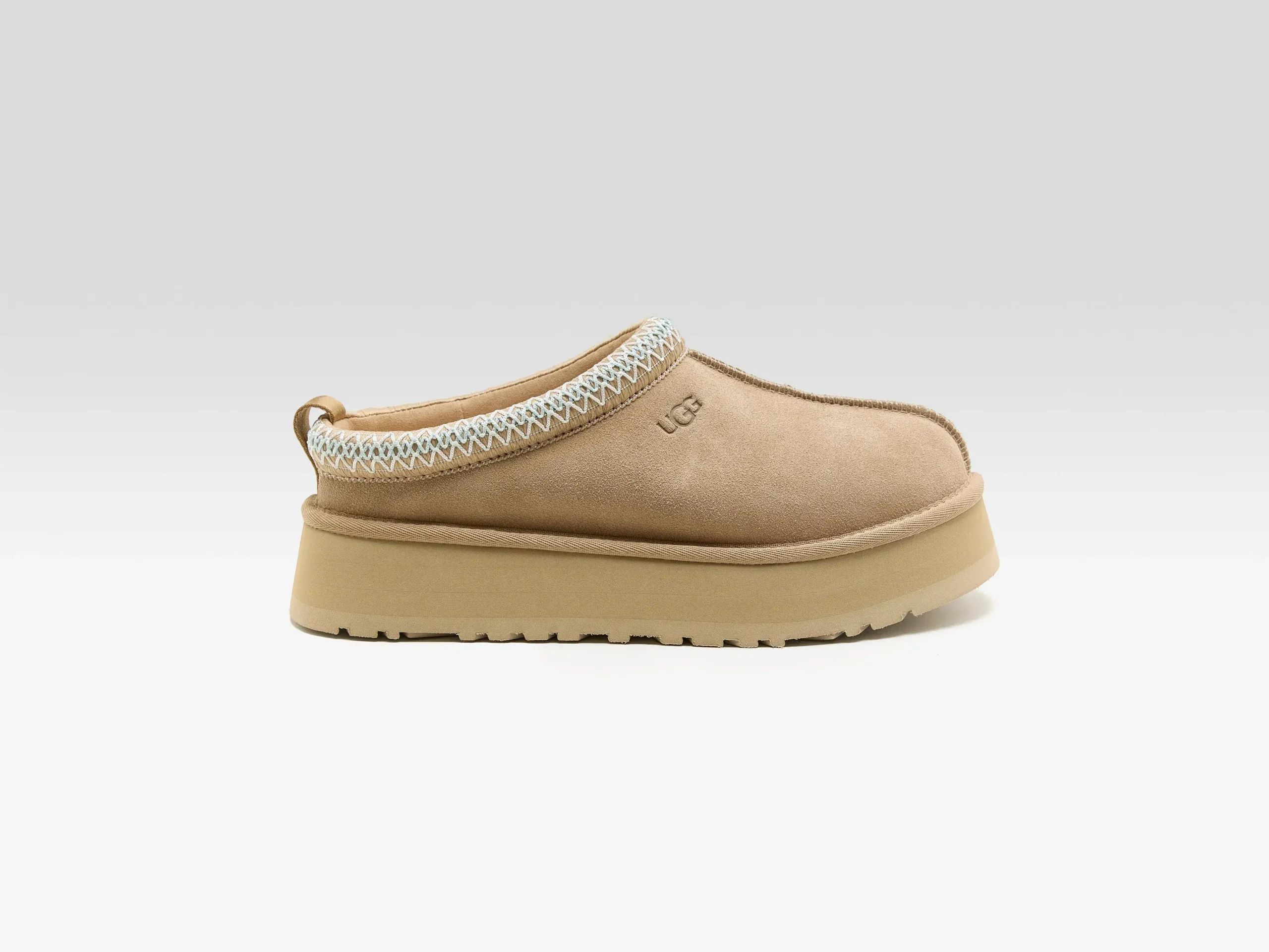 The UGG Tazz Slipper in Sand elevates the classic Tasman silhouette with a modern platform sole, signature braided collar, and ultra-soft lining for unmatched comfort and effortless everyday style.