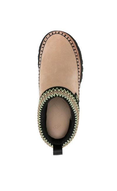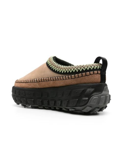 The UGG Venture Daze Suede Slippers combine bold streetwear design with signature UGG comfort. Crafted in sand brown suede with contrasting black details, this modern reinterpretation of the classic Tasman slipper brings both rugged appeal and refined craftsmanship.