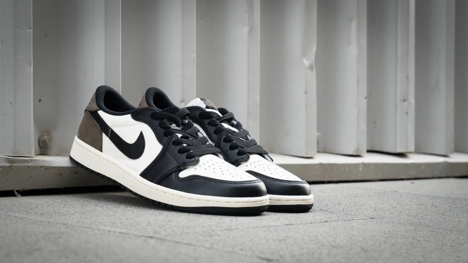 Immerse yourself in iconic street style with the Air Jordan 1 Retro Low OG Mocha. Combining premium leather and nubuck, this sneaker features a crisp white upper, contrasting black accents, and a rich brown heel overlay for an elegant look.