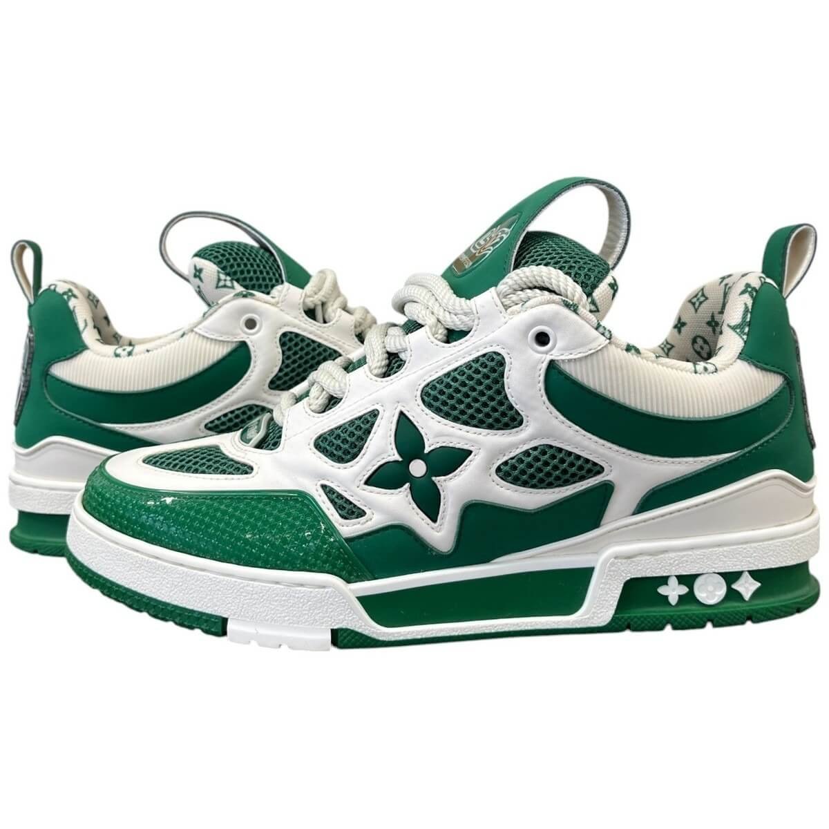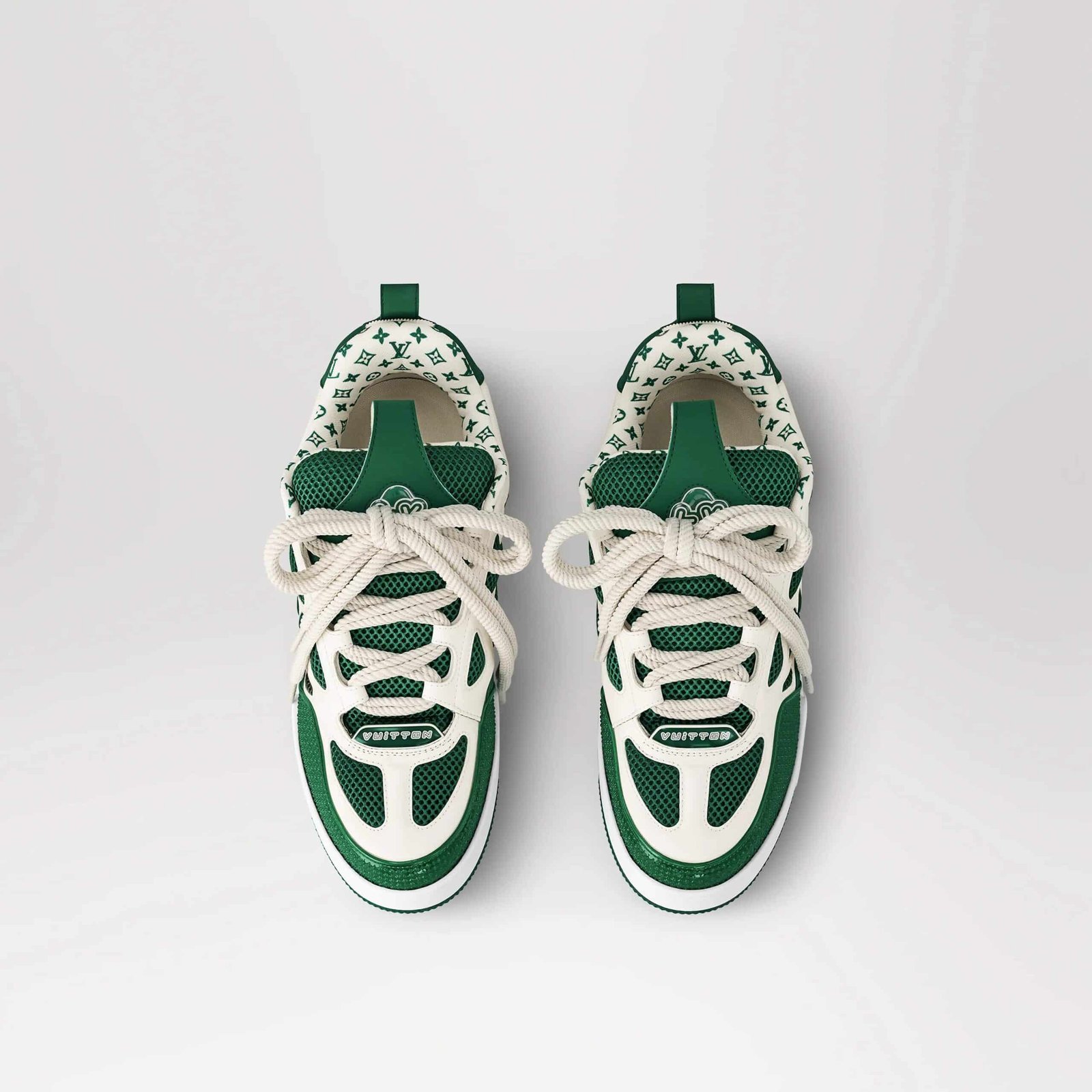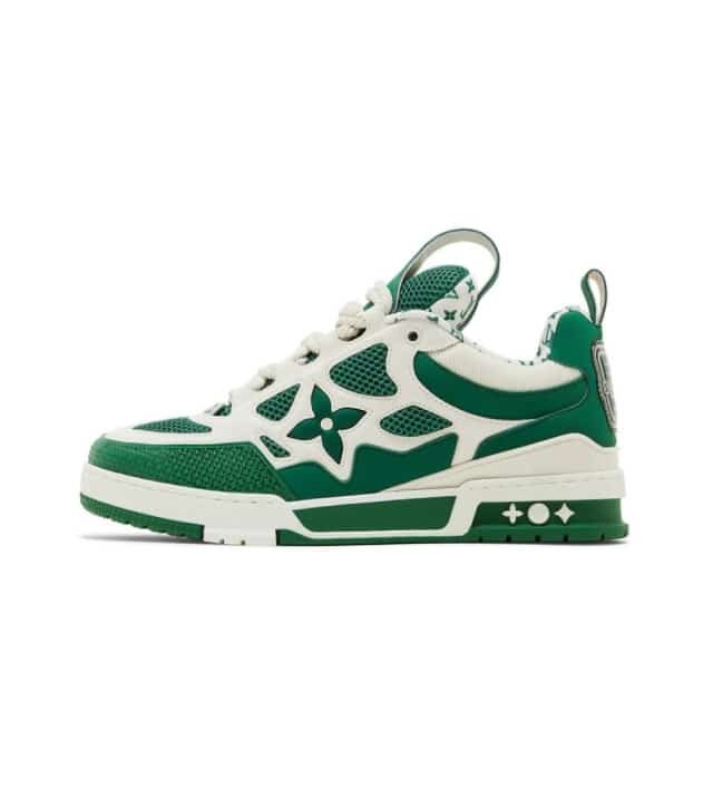 The Louis Vuitton LV Skate Sneaker blends vintage skate style with contemporary luxury. Crafted in green and white hues, this statement sneaker pairs bold design with high-end materials.