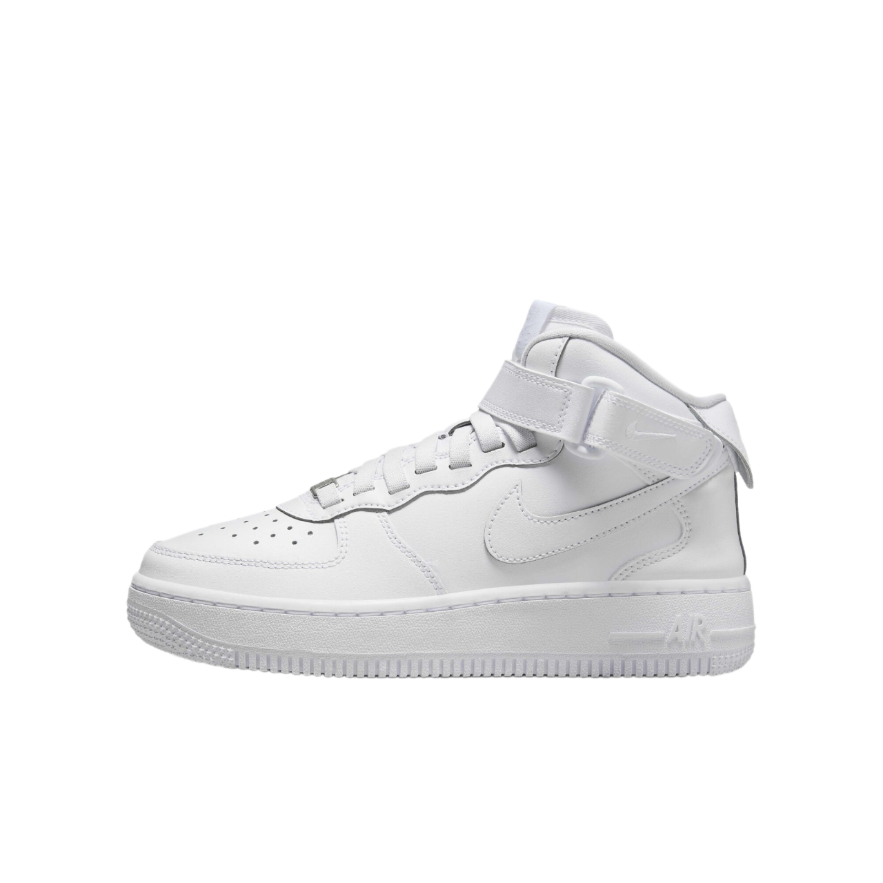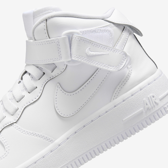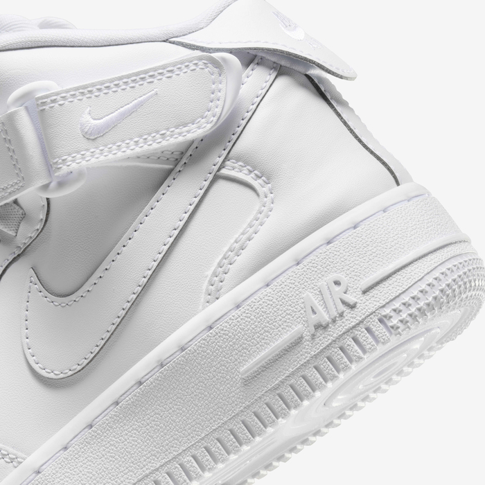 The Nike Air Force 1 Mid Easy On brings all the heritage style of the original AF1 with clever updates to make getting dressed a breeze. Elastic laces and an expandable heel counter allow little ones to slip them on and off with ease, without sacrificing the iconic look. Classic Nike Air cushioning provides soft support underfoot, while the durable rubber outsole offers long-lasting traction for active play. Finished in clean triple white, this easy-entry sneaker keeps kids comfortable and ready for any adventure.