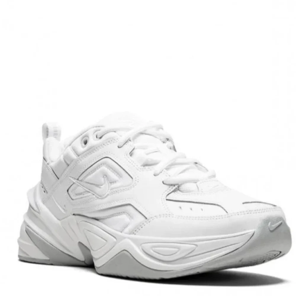 The Nike M2K Tekno White reimagines retro runner vibes with a chunky silhouette and modern comfort. Inspired by the iconic Nike Air Monarch, this model features an all-white leather upper with layered overlays and subtle branding for a sleek, tonal design. The sculpted foam midsole delivers lightweight cushioning, while the padded collar and tongue enhance all-day wearability. Finished with a durable rubber outsole, it’s a go-to sneaker for those who love combining heritage style with a bold, contemporary edge.
