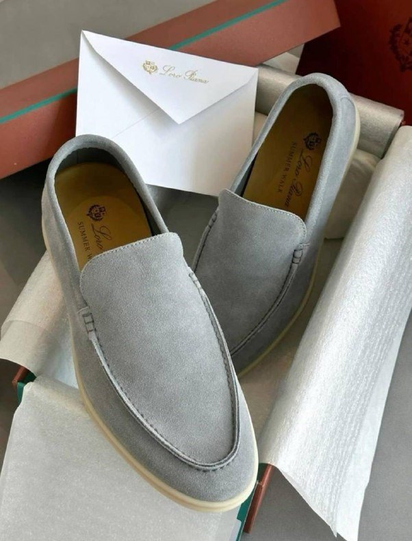Loro Piana’s Summer Walk loafers are an iconic staple of refined menswear, known for their clean lines and superior materials. Made in Italy from premium gray suede, this pair features hand-finished details, a soft unlined structure, and a lightweight white rubber sole for maximum comfort and flexibility. Ideal for smart casual occasions, weekend escapes, or city strolls, they embody understated luxury and timeless appeal.