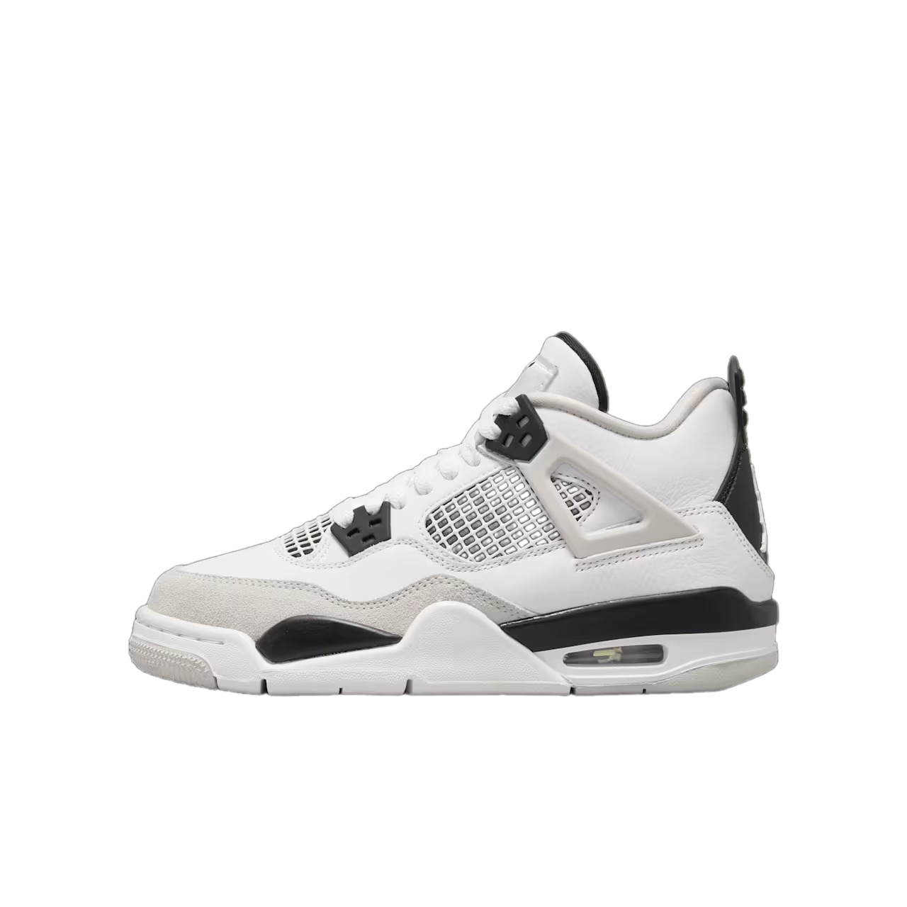 The Air Jordan 4 Retro ‘Military Black’ refreshes one of Jordan Brand’s most iconic silhouettes with a modern edge. Staying true to the AJ4’s original 1989 blueprint, this version features a crisp white leather upper paired with black and grey accents, bringing a balanced and versatile aesthetic.
