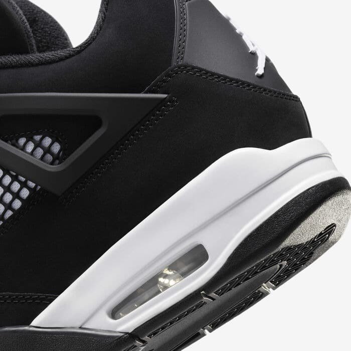 The Air Jordan 4 Retro ‘White Thunder’ reimagines the fan-favorite ‘Thunder’ edition with a fresh inverse palette. Featuring a black nubuck upper, the sneaker is accented with bright white hits across the midsole, eyestays, and signature wings. Classic mesh netting on the quarter panel and tongue keeps the original 1989 aesthetic intact. Rich textures, synthetic overlays, and subtle metallic elements give this pair a modern-luxury edge. The visible Air unit in the heel and herringbone outsole offer the comfort and performance synonymous with Jordan’s heritage line. Whether you’re a longtime collector or a fresh enthusiast, this edition delivers statement appeal with archival spirit.