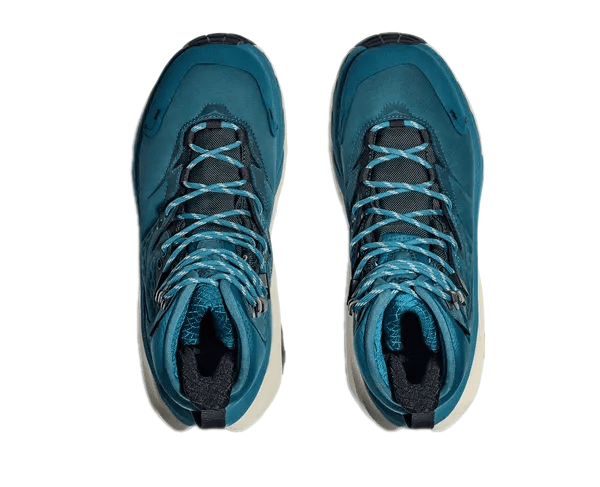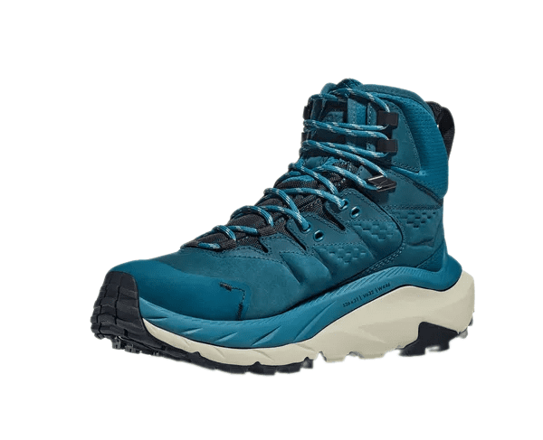 The Hoka Kaha 2 GTX in turquoise delivers waterproof protection, durable grip, and plush comfort — built for outdoor adventures and long-distance treks.