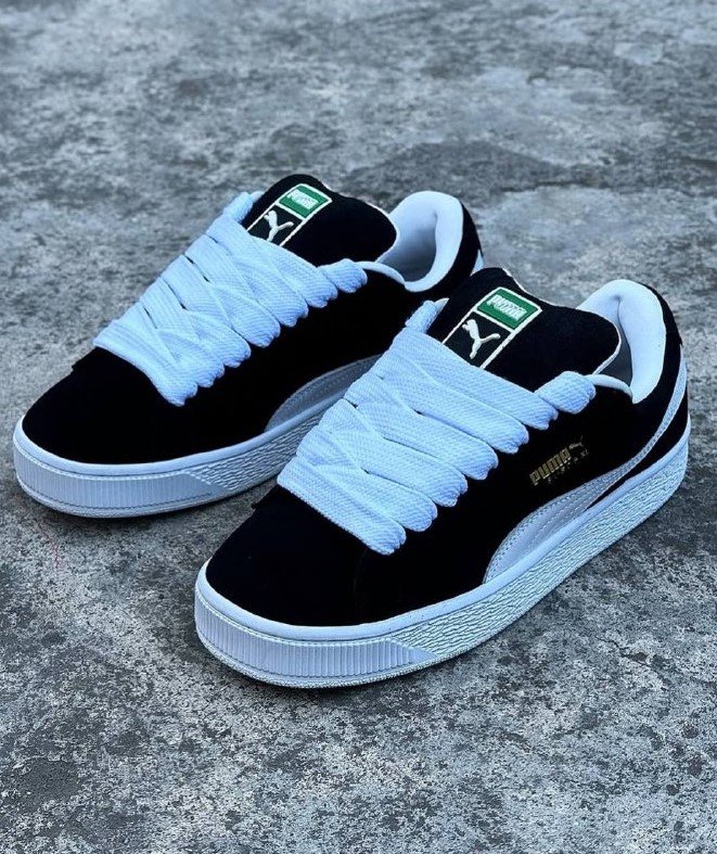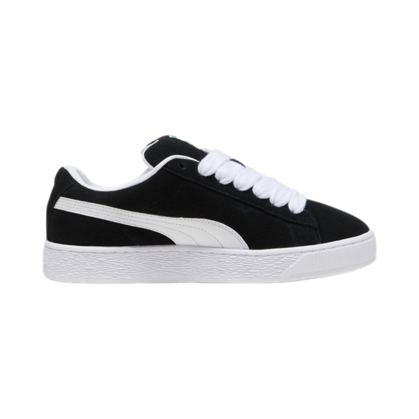 The PUMA XL Breakcore reinvents the iconic Suede silhouette with bold proportions inspired by breakdance culture. Featuring a full suede upper, leather Formstrip, and exaggerated padding around the collar and tongue, this black-and-white model delivers a fusion of heritage style and modern streetwear energy.