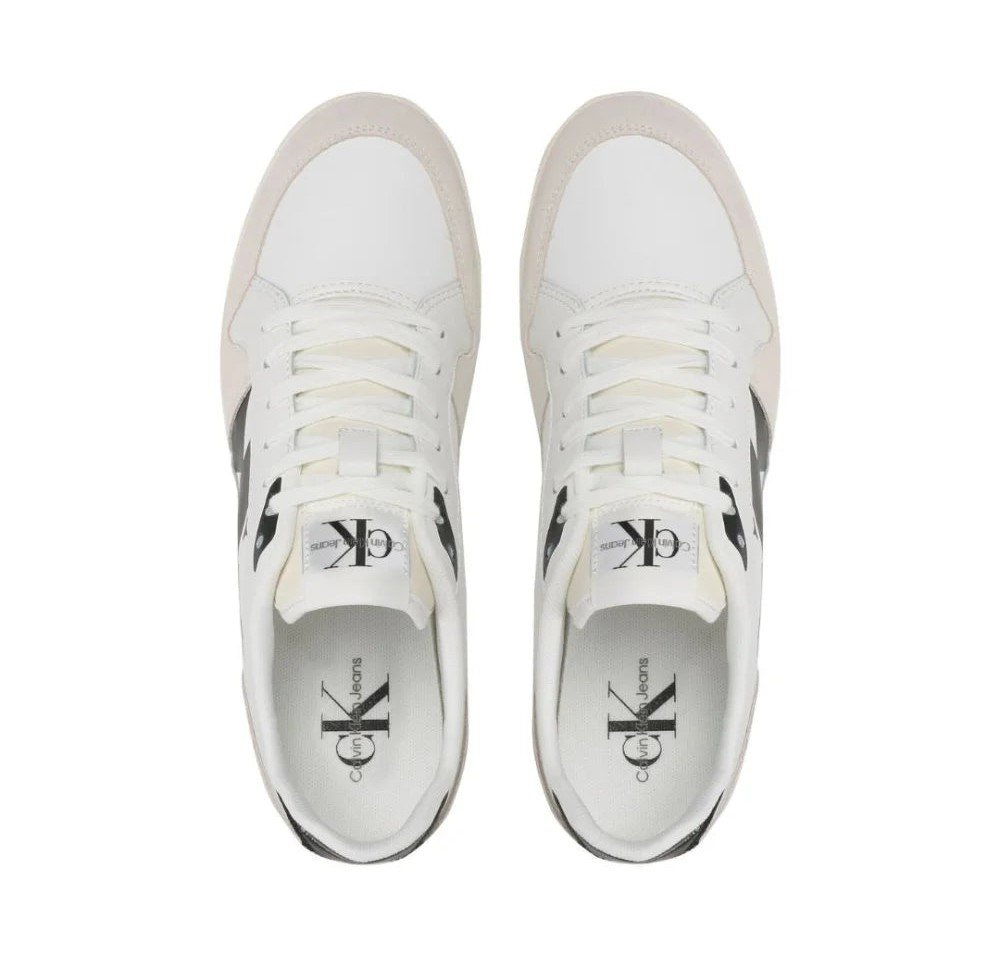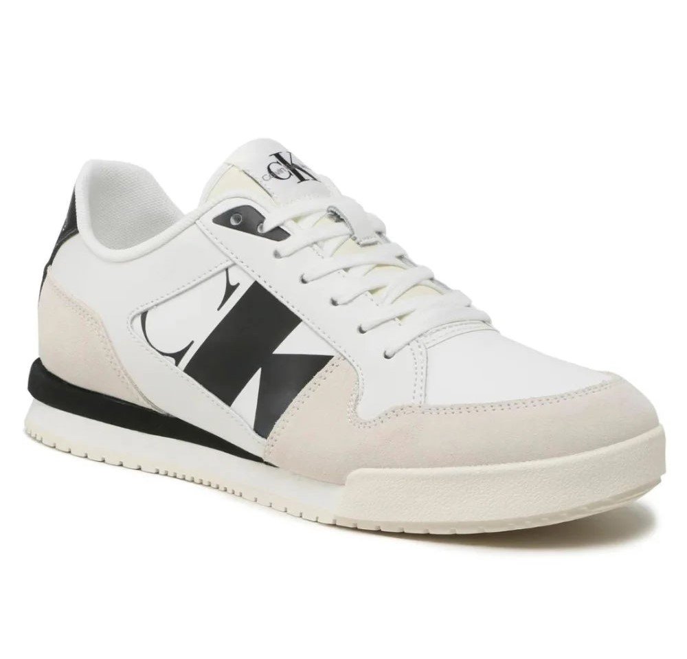 Elevate your everyday look with these Calvin Klein Jeans Low Profile Runner sneakers. Designed in a white and black combo, they blend vintage charm with modern comfort. Lightweight and breathable, perfect for active lifestyle wear.