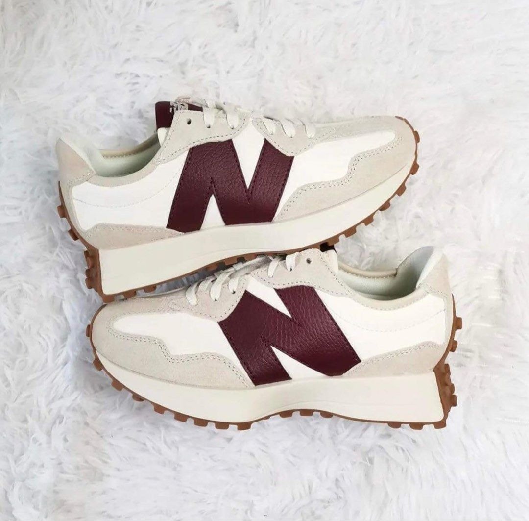 New Balance 327 Low-Top Sneakers White Beige Burgundy Red Unisex