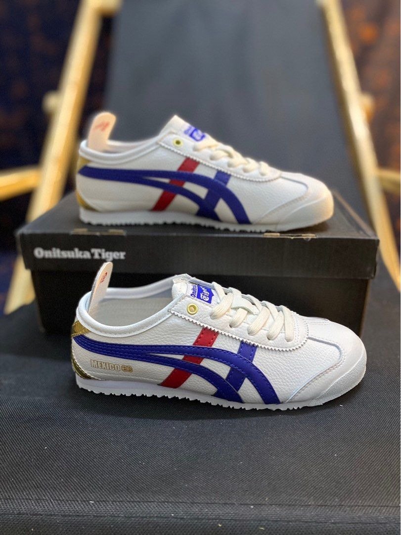 The Onitsuka Tiger Pacific 66 reimagines the legendary Mexico 66 with a crisp white base and striking blue accents. Made from 100% smooth cow leather, it delivers retro appeal and everyday comfort—perfect for laid-back lifestyle use with a clean, athletic edge.