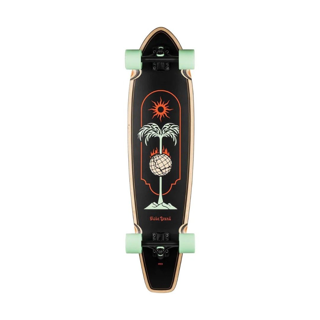 The Globe The All-Time Skewered 36″ Longboard delivers a smooth, responsive ride perfect for daily commutes, weekend cruises, or carving down your favorite paths. Constructed from 8-ply maple, it’s built for durability and stability underfoot. The single kicktail enhances maneuverability, while wheel wells help reduce wheel bite, allowing for deep carves. Finished with bold Skewered graphics and equipped with Slant 150mm trucks, this board is tuned for performance — whether you’re gliding through the city or navigating a slalom of sidewalk obstacles.