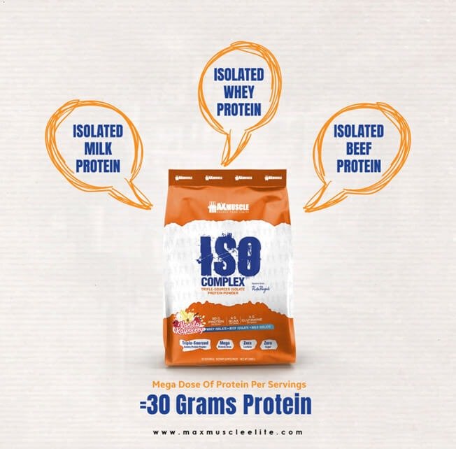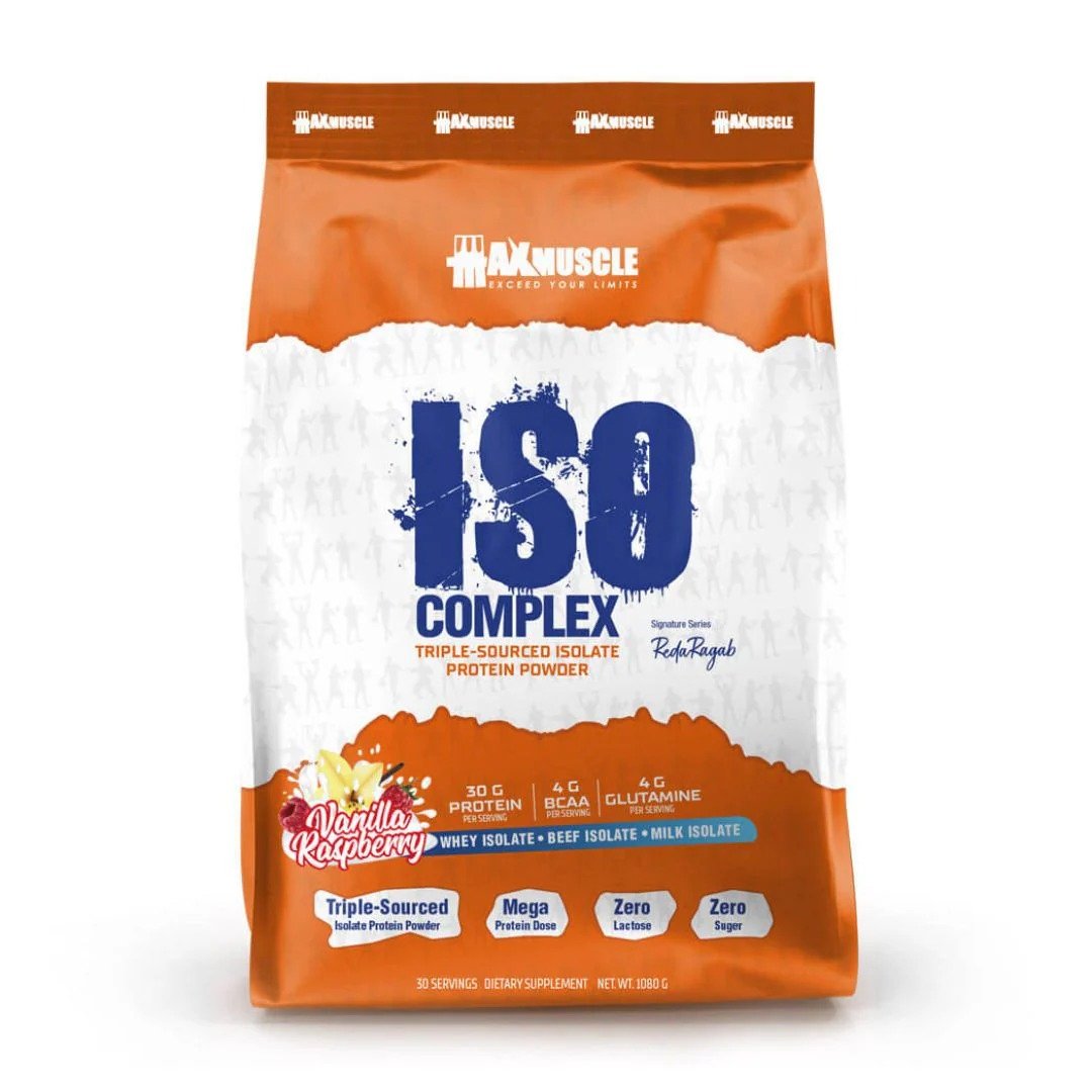 Max Muscle Iso Complex from the Reda Ragab Signature Series is a cutting-edge, triple-sourced isolate formula crafted with precision and science. Each scoop provides a mega dose of 30g pure protein from Hydrolyzed Beef Protein Peptides, Milk Protein Isolate, and Whey Protein Isolate—all while being zero fat, zero sugar, zero carbs, and lactose & gluten free.